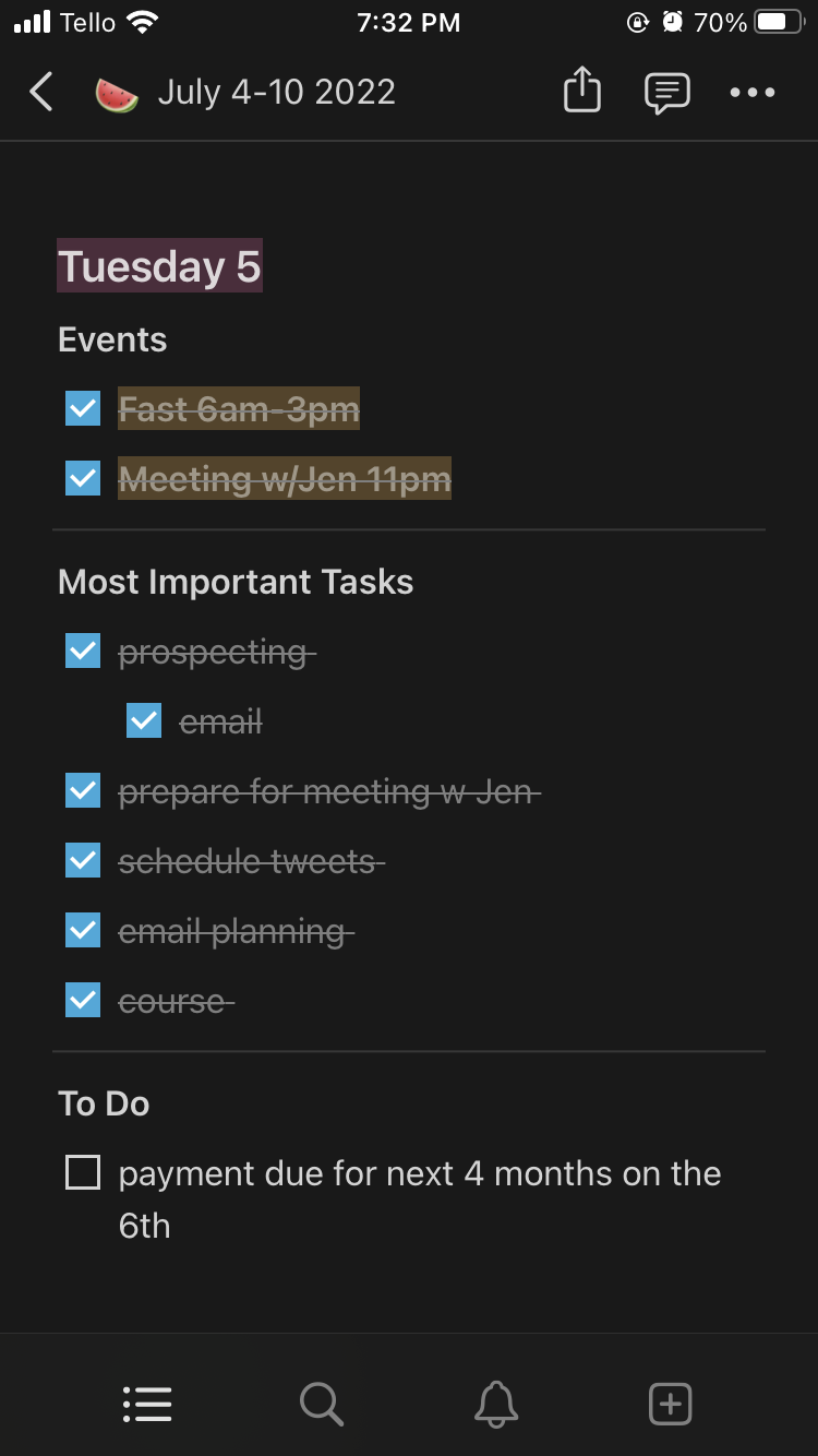 Top Priorities: a list of the top 3 things that need to get done that week.
