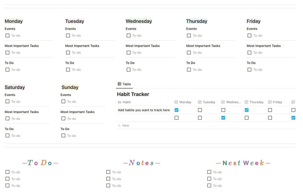 ⭐️ Plan a more efficient and structured week without getting overwhelmed.